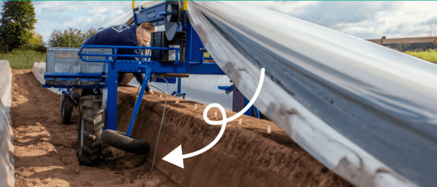 Le système breveté AspergeSpinTunnelSystème, développé par Engels Machines, vous permet de gérer précisément la température dans la butte. Grâce à ses différentes configurations de films plastiques (noir/blanc et thermique), il favorise une croissance contrôlée et de qualité, quelles que soient les conditions climatiques.
